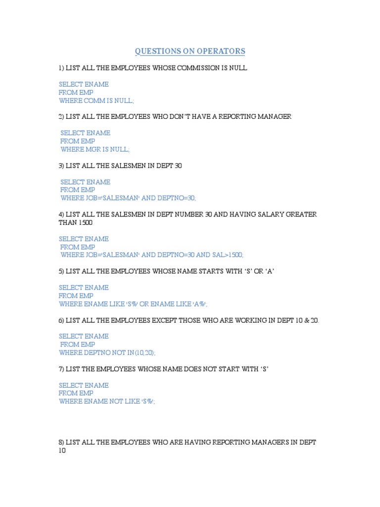 Sql Operators With Ans Pdf Business