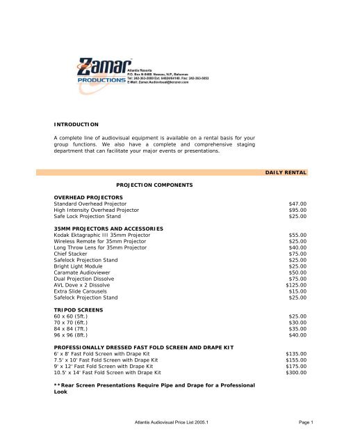 Web All Equipment Will Be Installed With A Minimum 22 Service Charge Applied to Equipment Rental Total VIDEO EQUIPMENT AUDIO-VISUAL EQUIPMENT - DAILY PRICE LIST Our location in the hotel allows us to respond quickly to help you with your audio visual needs and provide any necessary equipment upon request. 10x6 Viewable Screen more.